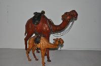 2 x Leather Camel Figures - 48cm & 28cm Tall