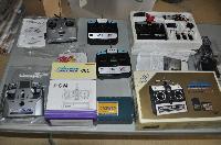 Box of Assorted Remote Controllers Including Futaba, Spektrum DX6i, Micro Etc