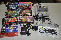 Super Nintendo with 2 x Controllers, Leads & 8 x Games - Super Mario All Stars, Doom, Time...