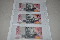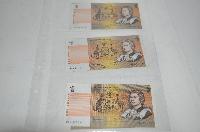 3 x Consecutive 2001 Five Dollar Australian Banknotes Serial No. DCO1348854 to DCO1348856...