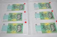 3 x Sets of 2 Consecutive One Dollar Australia Bank Notes - 2 x Sets 1982 Signed Johnston...
