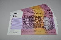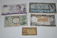 5 x Banknotes - 1 Cent Hongkong, Australian Ten Shillings, New Zealand Two Dollar, Borneo...