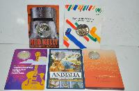 5 x Coins - Ned Kelly, Bicentennial School Students, Tamworth, Animalia & Footprints in Ti...