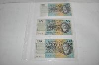 3 x Ten Dollar Australian Bank Notes - 2 x 1985 Signed Johnston & Fraser SN: UTP117537 & U...