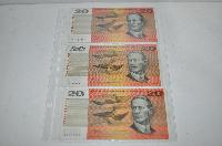 3 x Australian Bank Notes - 1 x 2017 $10 Signed Lowe & Fraser SN: DB171330564 & 2 x $20 -...