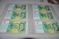 6 x Consecutive 1985 Two Dollar Australian Bank Notes - Signed Johnston & Fraser