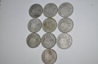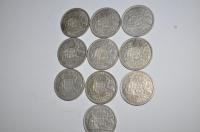 10 x Australian Florins Dated 1952,53, 54, 56 & 58