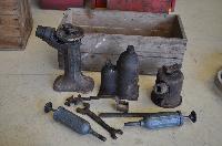 3 x Vintage Jack Including Lake & Elliot, 2 x Grease Guns & Jinker Spanners with Wooden Cr...