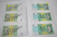 3 Sets of 3 Consecutive Two Dollar Australian Bank Notes - 2 x Sets 1985 Signed Johnston & Fraser & 1 x Set 1979 Signed Knight & Stone