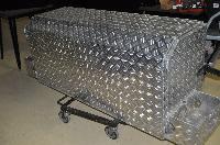 Checker Plate Caravan/Trailer Tool Storage Box with Jerry Can Holder 115cmL (155cm with Jerry Cans) x 47cmH x 32cmD - New RRP $795
