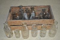 Quantity of Assorted Milk Bottles & Wooden Crate