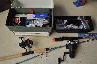 Tackle Box with Tackle, 2 x Reels, 1 x Rod & Net