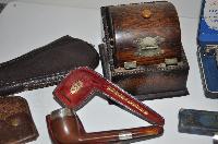 Cigarette Box, Hallmark Sterling Silver Pipe, Cutthroat, Lighters, Shaver, Pipe Bags & Ashtray
